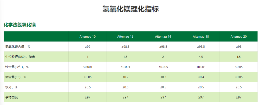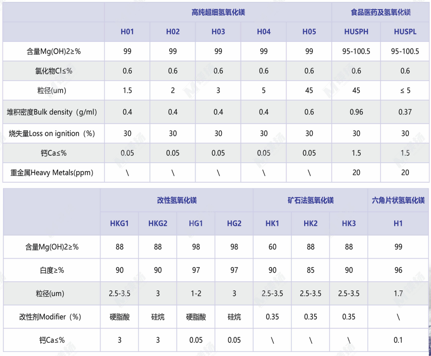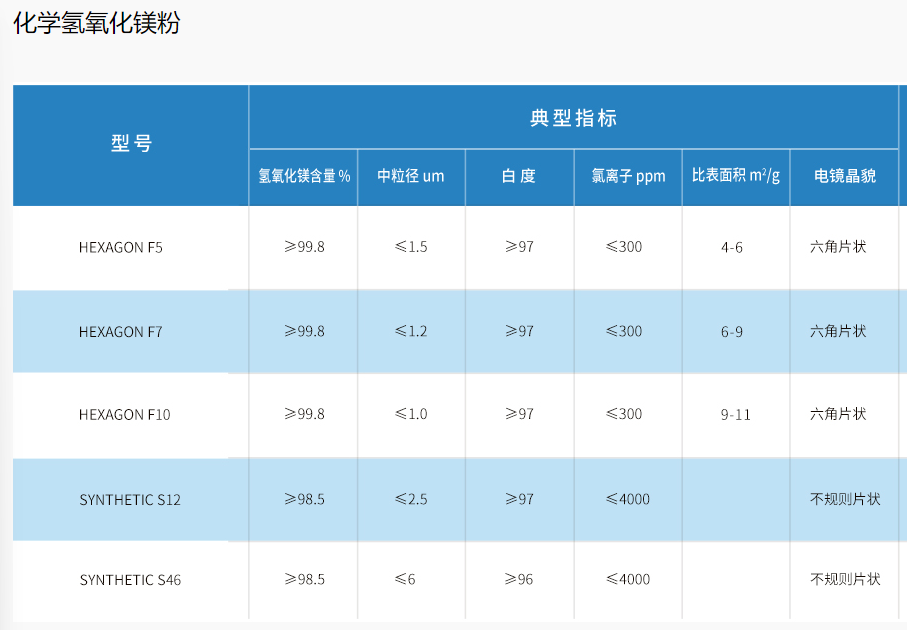 部分氢氧化镁产品规格如下: