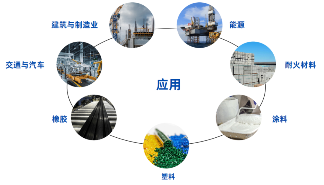 以上镁盐系列产品在建材、液晶玻璃、锂电池、电子陶瓷、塑料、橡胶、涂料、电缆、导热材料、化工助剂、食品医药等多个行业取得应用。