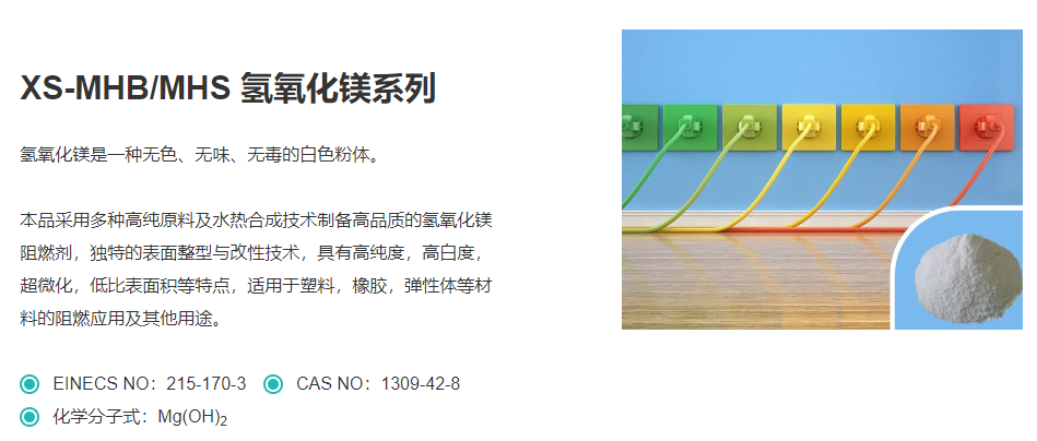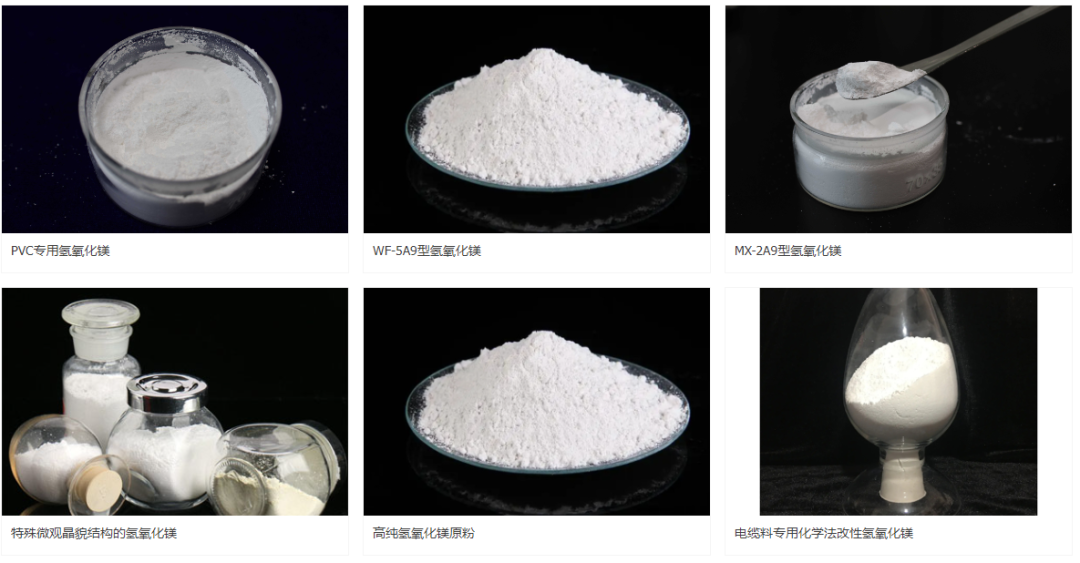 公司另有采用化学合成技术生产的高纯亚微米氢氧化镁,高纯度、高白度、超细微粉,其热稳定好、高效阻燃、抑烟、填充、安全无毒。
