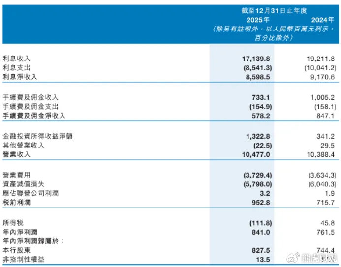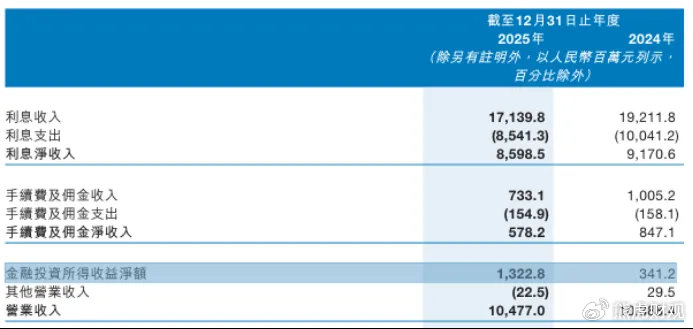 关于九江银行造血能力的削弱可以从手续费及佣金净收入的数据表现上看出。在2025年,九江银行的手续费及佣金净收入断崖式下跌,同比锐减31.7%,规模萎缩至5.78亿元。