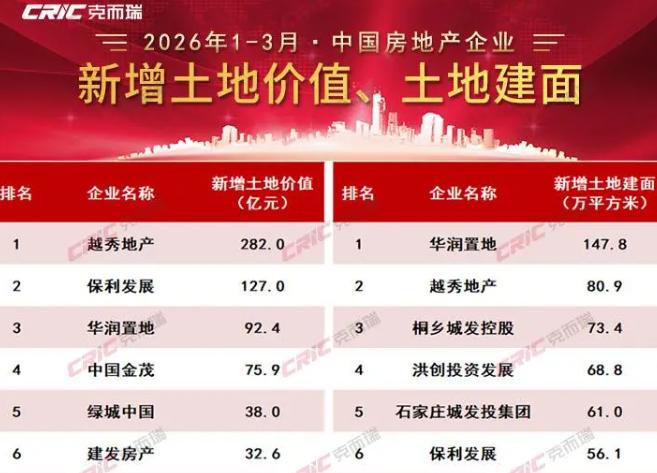 2026年一季度,全国房地产土地市场整体保持审慎投资态势,优质地块高度集中于核心城市,房企投资策略更趋理性与精准。根据克而瑞发布的《2026年1-3月中国房地产企业投资拿地分析报告》显示,一季度土地市场呈现“局部回暖、整体稳健”的运行格局,优质国企凭借稳健财务底盘与前瞻布局能力,在土拍市场中持续占据主导地位。建发房产凭借清晰的投资战略、稳健的经营底气以及对核心城市的深度研判,在一季度拿地榜单中表现亮眼,多项指标稳居行业前列,充分展现出强劲的投资实力与高质量发展潜力。报告数据显示,2026年1-3月,建发房产新增土地货值68.4亿元,位列全国房企第六位;新增土地价值32.6亿元,同样位居行业第六。在整体市场投资趋缓、百强房企中不足三成有拿地动作的行业背景下,建发房产依然保持稳定且高质量的投资节奏,以稳健姿态跻身行业投资第一梯队,成为市场审慎环境中为数不多保持积极布局的标杆房企。从投资逻辑来看,建发房产始终坚持“核心城市、优质地段、精准投放”的投资原则,在土地投资上保持高度理性与专业判断。一季度,公司继续聚焦一线及强二线核心城市布局,优先获取区位优势显著、配套成熟、去化保障度高的优质地块,以稳健投资策略筑牢长期发展根基。在行业整体投资力度收缩的大环境下,建发房产凭借国企信用优势、充沛现金流支撑与成熟运营能力,实现逆势稳健拿地,既为后续可持续发展储备优质资源,也彰显出对核心城市市场前景的坚定信心。稳健的财务状况,是建发房产能够保持科学拿地节奏的坚实底气。作为《财富》世界500强建发集团旗下核心地产平台,公司始终坚守安全经营底线,财务结构持续优化,三道红线保持全绿,现金储备充裕,融资成本稳居行业低位,为土地投资提供了强有力的资金保障。在行业投资普遍谨慎的背景下,建发房产不盲目跟风、不保守停摆,以“稳中有进”的投资节奏,实现规模扩张与风险控制的平衡发展。优质土储的持续补充,也为建发房产产品力落地与销售业绩领跑提供坚实支撑。近年来,公司以“新中式生活匠造者”为定位,打造“锦、秀、华、章”四大产品体系,依托成熟的“好房子”体系,从好设计、好材料、好建造、好配套、好服务五大维度构建全周期人居价值,在高端改善市场形成强大品牌号召力与产品溢价能力。随着新增优质地块逐步转化为高品质项目,公司将进一步巩固在核心城市的市场地位,推动销售业绩与市场占有率持续提升。2026年一季度,建发房产在销售端与投资端双双实现稳健表现,全口径销售额稳居行业前列,权益销售额排名更进一步,拿地金额与货值同步跻身全国第六,形成“销售领跑、投资稳健”的良性发展格局。在行业向品质化、精细化转型的关键阶段,建发房产以稳健经营、精准投资、产品深耕三大核心优势,持续构筑穿越周期的竞争力。展望二季度,全国土地市场预计延续“局部回暖、整体审慎”的态势,核心城市优质地块仍将是房企布局重点。建发房产将继续坚持稳健投资策略,聚焦高能级城市、深耕优势区域、精选优质地块,持续优化土储结构。同时以产品力为核心引擎,加快优质项目转化,不断提升运营效率与盈利水平,以更扎实的经营成果、更优质的人居作品、更稳健的发展步伐,在行业高质量发展浪潮中持续领跑,为城市更新与人居升级贡献更大力量。举报/反馈
