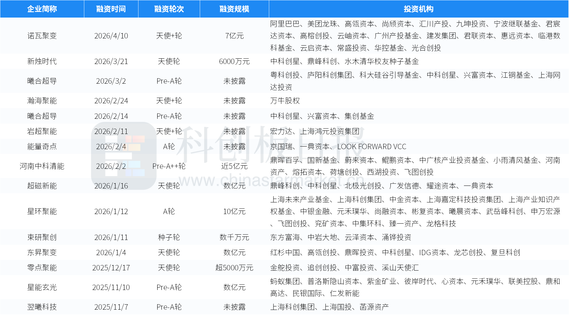 近日,公司宣布完成7亿元天使+轮融资。本轮融资由阿里巴巴作为早期投资方继续加码,美团龙珠、高瓴资本、尚颀资本、汇川产投、九坤创投等新投资方入局,君联资本、高榕创投、光合创投等机构持续跟投。至此,成立仅一年的诺瓦聚变已完成两轮累计12亿元融资。