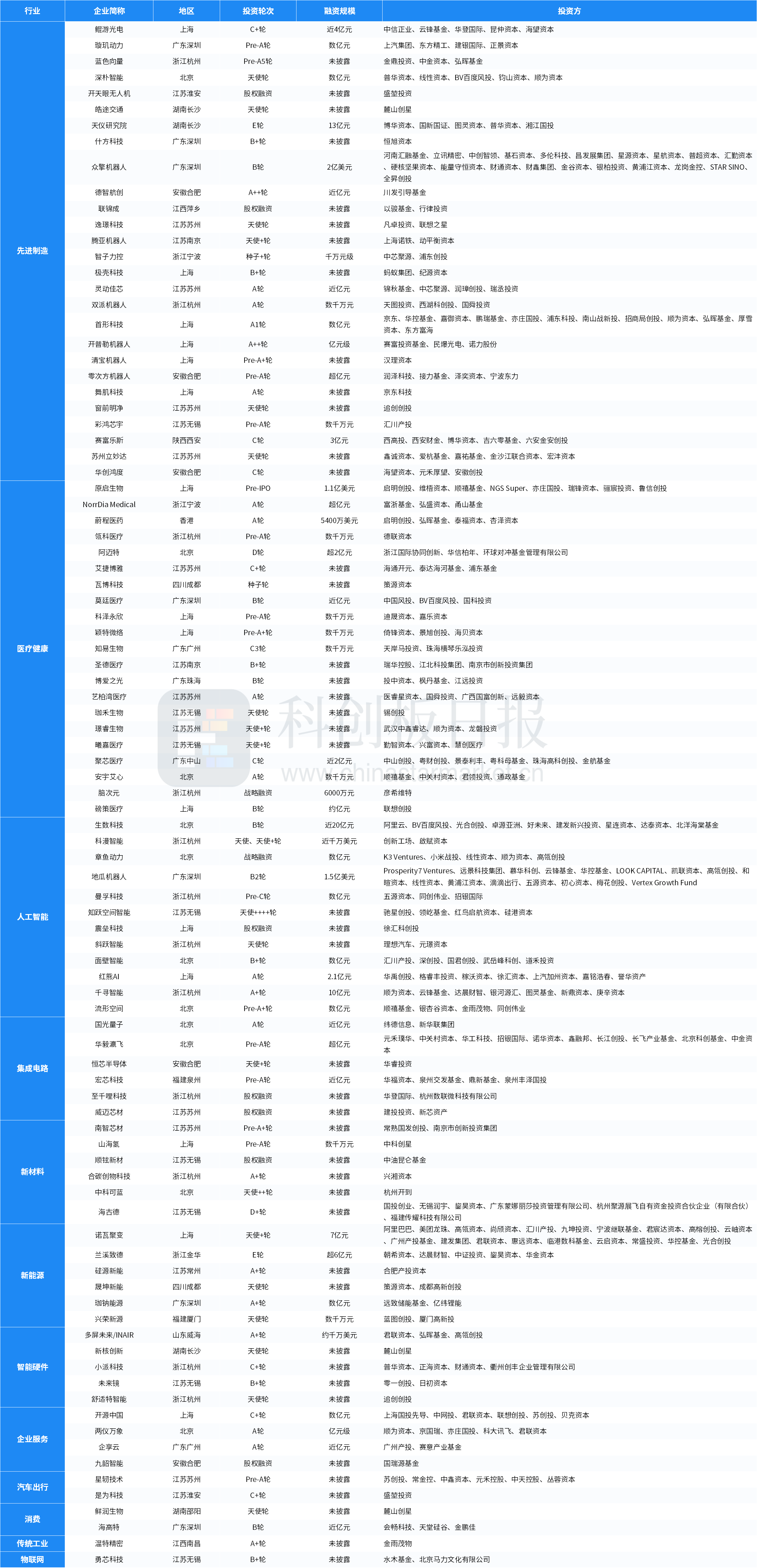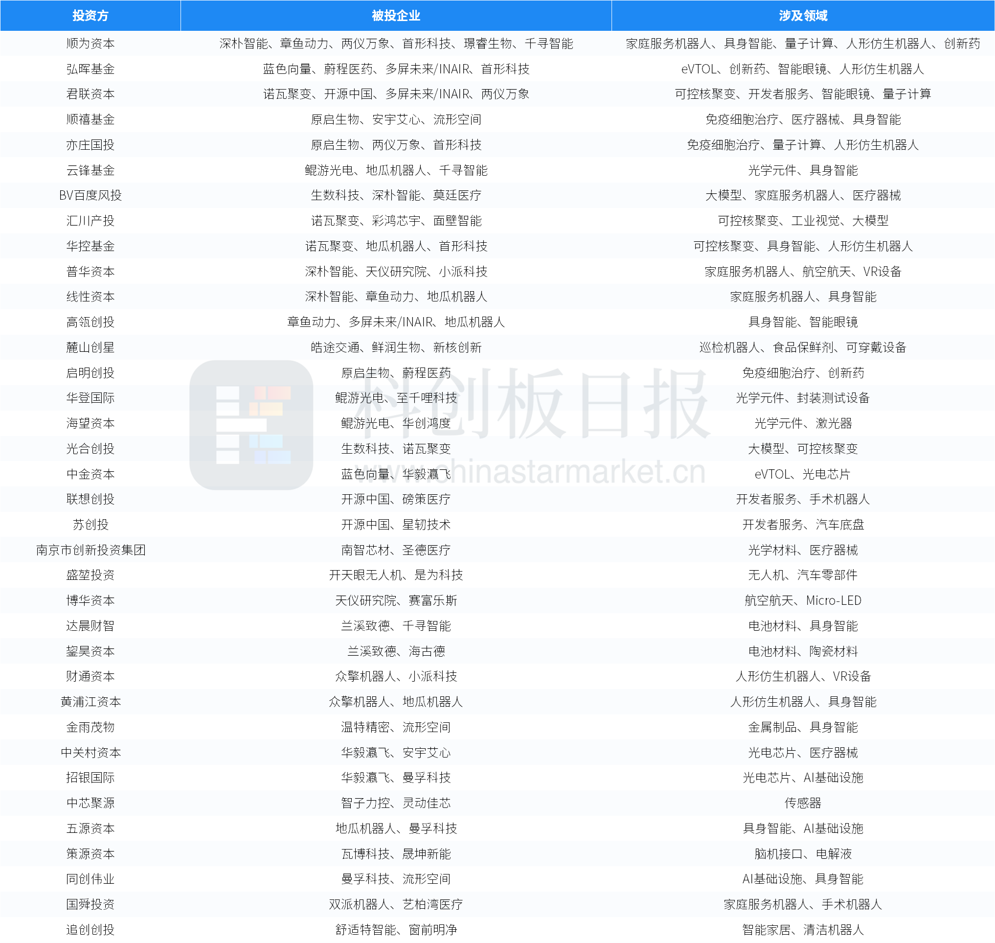 投资机构中,顺为资本、弘晖基金、君联资本、顺禧基金、亦庄国投、云锋基金、BV百度风投、汇川产投、华控基金、普华资本、线性资本、高瓴创投、麓山创星出资次数均在3次及以上。本周部分活跃投资方列举如下: