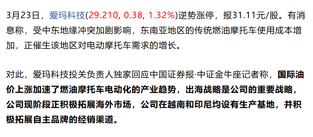 好了,轮到雅迪、爱玛们笑了,中东一打仗,他们股价直接暴涨。