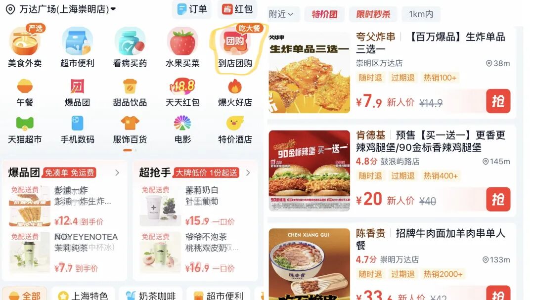 美团的“老对手”淘宝闪购,也在去年9月于上海、深圳等城市启动团购业务试点……