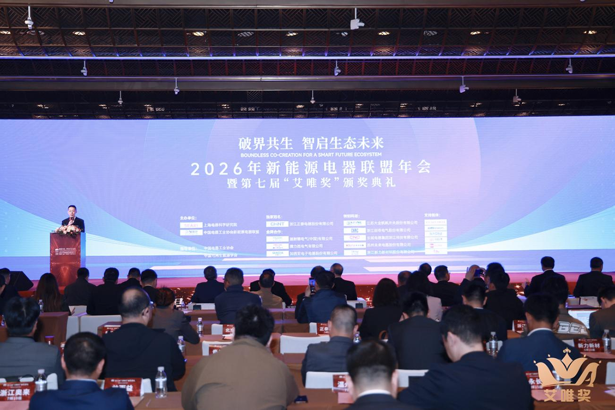 2026年4月10日,由上海电器科学研究院、新能源电器联盟、低压电器行业与可再生能源发电系统领域评选活动组委会共同主办,以“破界共生智启生态未来”为主题的2026年新能源电器联盟年会暨第七届“艾唯奖”颁奖典礼在上海隆重举办,活动汇聚低压电器行业及新能源领域相关科研院所、领军企业及用户代表,围绕产业前沿趋势、技术创新路径、市场机制设计等核心议题展开深度研讨,共同擘画绿色低碳、智慧融合的产业新生态。