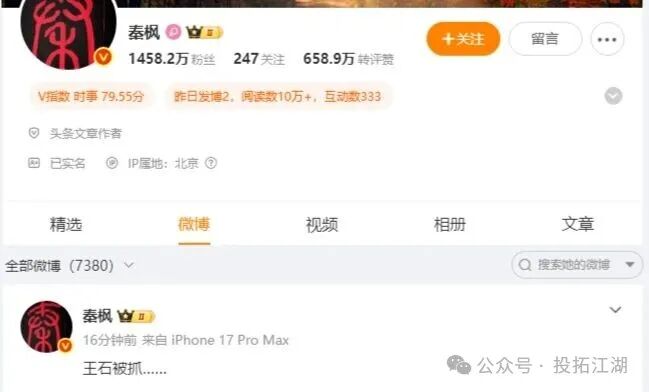 4月12号傍晚,网上突然炸了锅,有香港知名媒体人放出消息,说万科创始人王石被抓了。