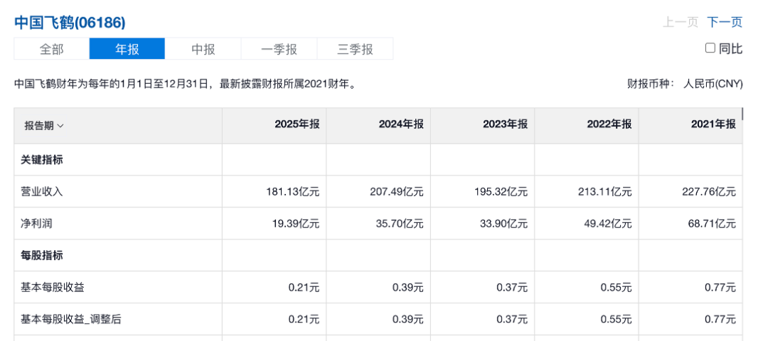 2025年飞鹤营收为181亿元,较去年同期减少了12.7%,利润更是减少了42.7%仅为20.94亿元,减幅将近一半。