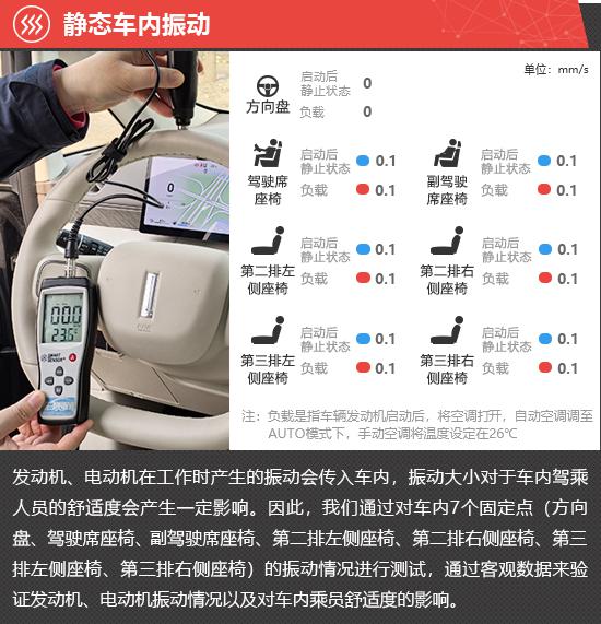 在静态车内振动测试环节,启动后静止和负载两种状态下,2025 款魏牌高山 8 方向盘位置的振动数值始终为 0,全车座椅在两种状态下的振动数值均为 0.1mm/s,实际体感轻微。