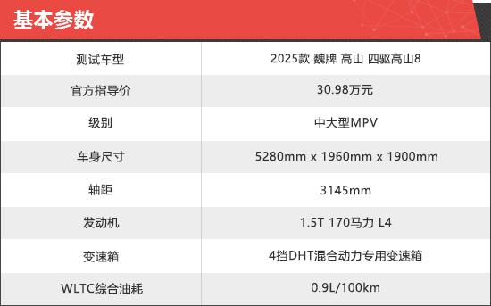 2025 款魏牌高山 8 新车商品性评价