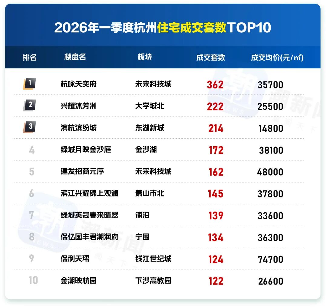 最近一季度杭州住宅销售榜单出炉,结果有些出人意料。