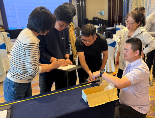 以电热毯为例,韩老师演示了如何利用智能体分析产品在海外市场、用电安全、价格竞争力等方面的量化指标,并输出了三种差异化方案及配套策略,将传统数周的需求分析流程压缩至小时级,验证了AI在降本增效中的核心价值。同学们还通过抛射器精度控制等现场操作,体验了DOE实验设计四步法解决参数优化难题,成功将实验预测精度从30%提升至84%,实现关键参数精准锁定。学员们对建模实现设计优化的作用和价值也有了更深的理解和认识。