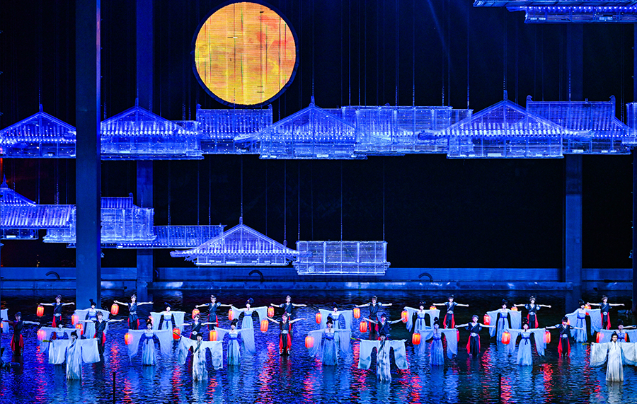 演员在《归来三峡》实景演出中表演。新华社记者王全超摄