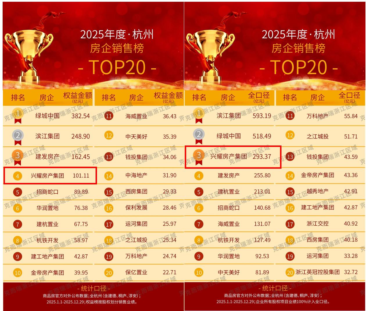 2025年,兴耀房产首度跻身杭州房企年度销售TOP3阵营,并以超293亿元的全口径销售金额,在全国房企格局中成功迈入民企第一梯队。