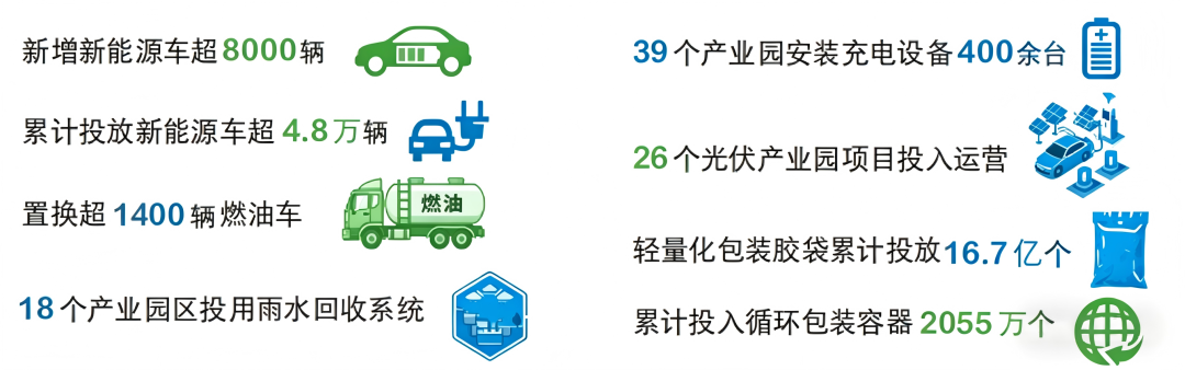 在水资源利用方面,园区采用透水混凝土工艺,搭建雨水收集与循环利用体系,将回收雨水用于绿化灌溉,从源头提升水资源利用效率。截至2025年年底,18个产业园区已建成并投用雨水回收系统,节水成效显著。