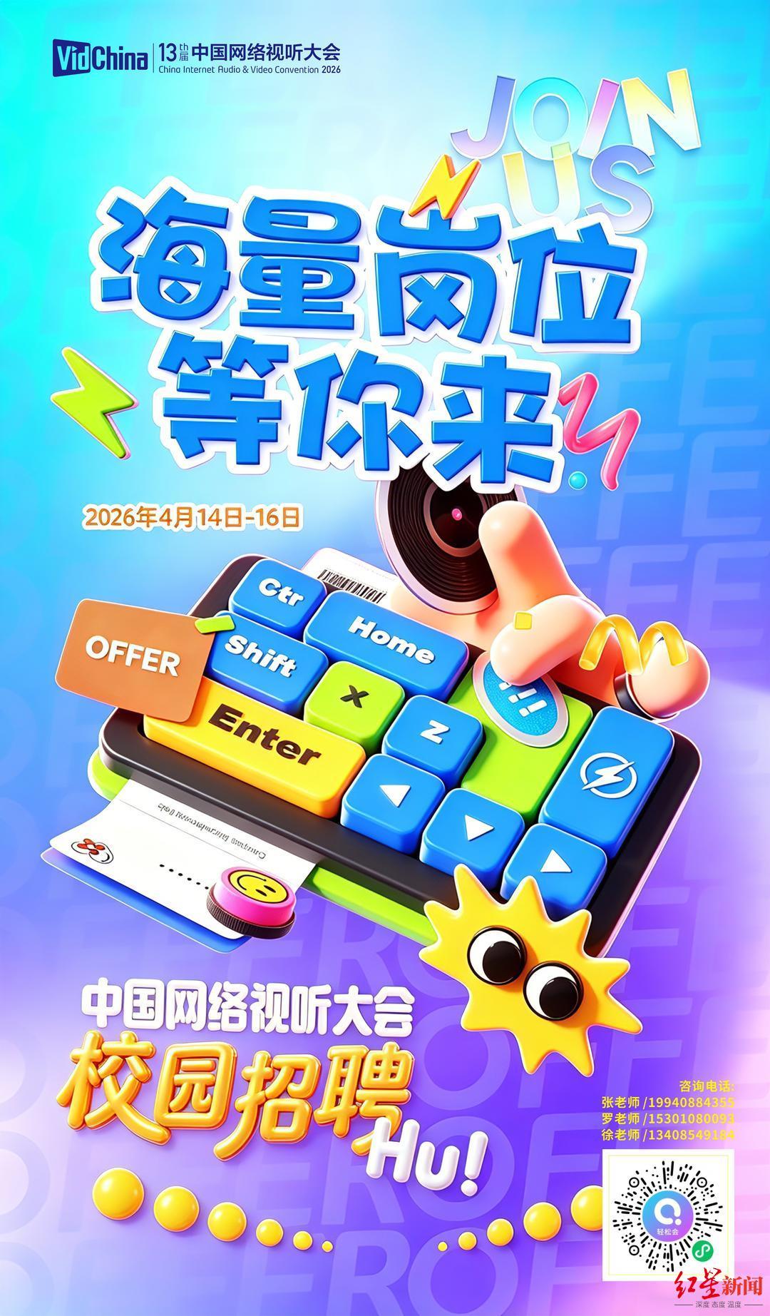 春招正酣,英才汇聚。4月13日,红星新闻记者从中国网络视听大会主办方获悉,首届中国网络视听大会校园招聘会已于今日开启网络报名通道,线下招聘会将于4月14日至16日在成都新会展中心同步启幕,与第十二届中国网络视听大会携手,打造全国网络视听行业专属人才对接平台。红星新闻记者注意到,作为大会连续十三年的举办地,成都凭借蓬勃发展的网络视听产业生态、完善的人才扶持体系,也成为了此次校招会的“人才引力场”,吸引全国数百家企业齐聚蓉城,释放5000个以上优质岗位,为全国高校学子搭建起直通职场的“快车道”。数百家企业集结5000余岗位邀约青年人才青春逐梦据悉,此次校招会紧扣“年轻化、科技化、专业化、精准化”定位,汇聚了芒果、华数、腾讯、优酷、抖音、快手、B站等知名大厂,以及近30家成都本地代表性企业,释放5000个以上优质岗位。岗位覆盖技术研发、内容创作、运营管理、创意策划、AI视听等全领域,薪资待遇优厚,为青年人才提供了广阔的发展空间。▲首届中国网络视听大会校园招聘会宣传海报梳理各大企业招聘信息可见,不同领域岗位薪资梯度清晰,核心岗位竞争力突出。成都本地岗位中,咪咕音乐推出的AI产品经理、大数据开发工程师、JAVA开发工程师等岗位年薪均达20万-30万,算法工程师岗位更是给出25万元-35万元的高薪;作为成都本土动画产业的标杆企业,成都可可豆动画影视有限公司推出6个岗位,年薪最高达40万,涵盖创作、技术、研发等多个维度,为热爱动画产业的青年人才提供了近距离参与优质项目的机会。“大会的行业影响力与规模的吸引力显著,既能对接高端研发人才,也能吸纳优秀高校学子。”成都海艺互娱科技有限公司招聘负责人衡丽婷在接受采访时表示,此次公司带来了40余个招聘名额,校招岗位占比达40%。“我们此次带来了AI产品研发、市场运营、内容创作三大类核心岗位,研发类包括产品专家、技术专家、模型训练专家等,内容创作类涵盖高级网文编辑、漫剧编导等,适配企业后续漫剧、小说业务的发展需求。”透视产业生态成都成网络视听人才“引力场”红星新闻记者观察到,作为国家广播电视总局、四川省人民政府主办的国家级行业盛会,中国网络视听大会已在成都深耕十余载,成为网络视听行业发展的“风向标”,也见证着成都网络视听产业的崛起与腾飞。近年来,成都聚焦数字文创与网络视听产业,构建起涵盖影视制作、短视频、直播、AI视听、VR/AR内容制作等全领域的完整产业链,尤其在AI与内容创作融合领域势头强劲,吸引了腾讯、网易、可可豆动画等众多行业头部企业入驻,形成了产业集群效应。数据显示,仅成都高新区就聚集了6000余家数字文创相关企业,产业规模突破千亿元,人才“磁吸力”持续增强。“近两年成都AI产业氛围越来越好,人才聚集效应凸显,很多来自一线大厂的人才都有回流成都的意愿。”衡丽婷特别谈到,近两年企业新招聘人才中,川内人才与从川外一线城市回流的人才各占一半,大部分本地人才能够满足企业高端人才需求。▲首届中国网络视听大会校园招聘会宣传海报可以看到,当前成都正凭借其坚实的产业基础、优良的人才生态和开放的城市气质,成为滋养“AI+视听”创新力量的沃土。“公司团队年轻化程度极高,90后及以上员工占比超80%,为激发青年人才创新活力,公司专门成立创新产品组,支持年轻人大胆试错、落地创意,优秀想法可直接获得项目立项支持。”衡丽婷所在的海艺互娱正是成都网络视听产业发展形成的“人才观”小小缩影,而随着首届中国网络视听大会校园招聘会的落地,更是将产业发展需求与青年就业市场精准对接,让蓉城成为青年人才逐梦前行的沃土、网络视听产业快速发展的高地。红星新闻记者陈学志编辑欧鹏举报/反馈