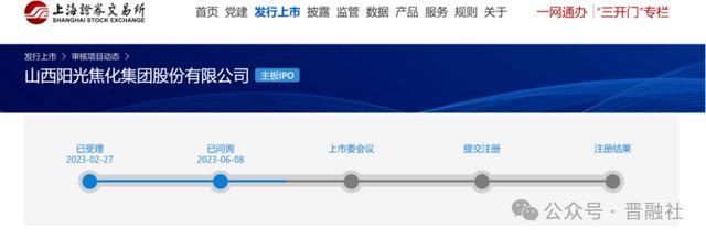 2023年2月,阳光焦化集团IPO获上交所受理,6月更新为已问状态。在审核阶段,阳光焦化集团多次因财务数据过期,而中止IPO审核。