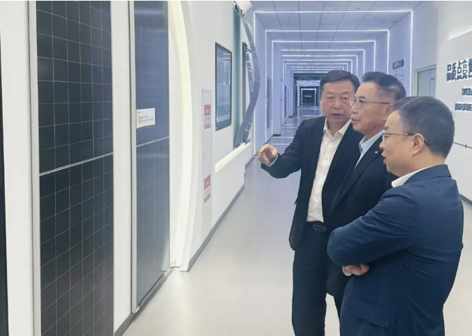 李东生先后参观一道新能BC电池组件产线、智能封装测试产线,了解各环节生产流程、工艺控制及产能运行情况。