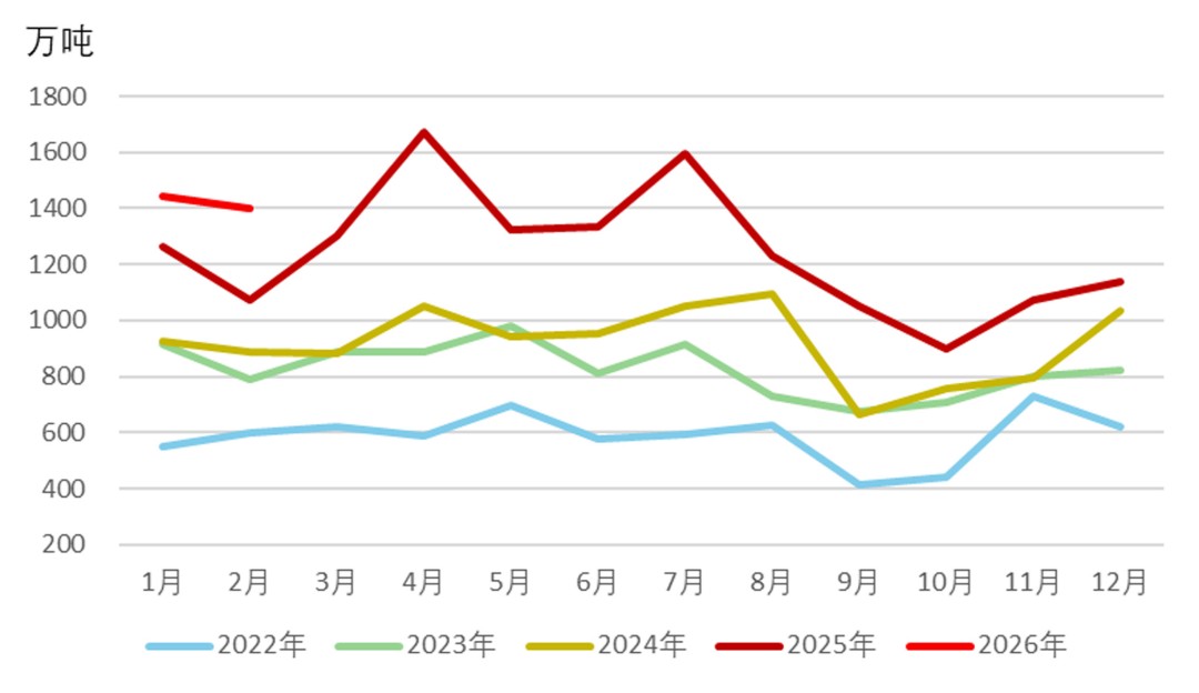 2026年,全球铝土矿供应继续大增。几内亚地区仍有大量项目新增以及提产,包括中铝博法二期、宁巴矿业新矿达产、顺达矿业复产扩产等,全年合计新增产能约7000万~7500万吨,年度新增产量在3000万~5000万吨,或推升几内亚铝土矿产量达到2.2亿~2.3亿吨。其他地区中,澳大利亚South32 韦帕(Weipa)扩建新增600多万吨产能;圭亚那俄铝(Rusal)项目新增产能500万吨;印尼Inalum 曼帕瓦(Mampawa)扩建300 万吨自用;喀麦隆米宁马塔普(Minim Martap)铝土矿新增产能120万吨,合计新增产能在1520万吨左右,大部分新增产能将在下半年陆续投产,新增产量预估在500万~700万吨之间。