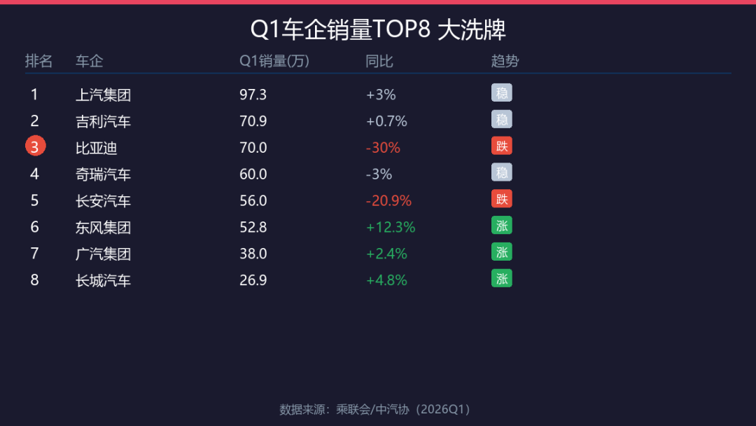这三个因素叠加,让Q1看起来惨不忍睹。但你如果只看3月,289.9万辆,环比暴涨60.6%,市场已经在快速修复。说白了,Q1是"阵痛期"而不是"衰退期"。
