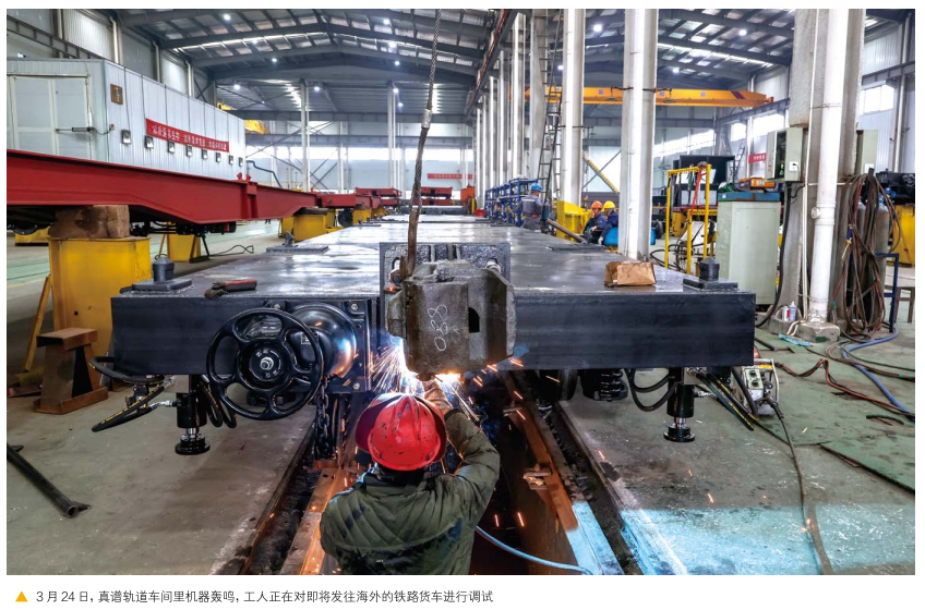 如今,在泰国的热带雨林、蒙古国的茫茫草原、俄罗斯的皑皑雪原上,真谱轨道的车辆正拉着矿石、煤炭和建材来回穿梭,适应着不同国家的轨距、气候和路况。除了新造车,真谱轨道还具备配件生产制造能力,并配套了铁路货车租赁和维保业务,2025年新造各型车辆300多辆,产值达1亿元。