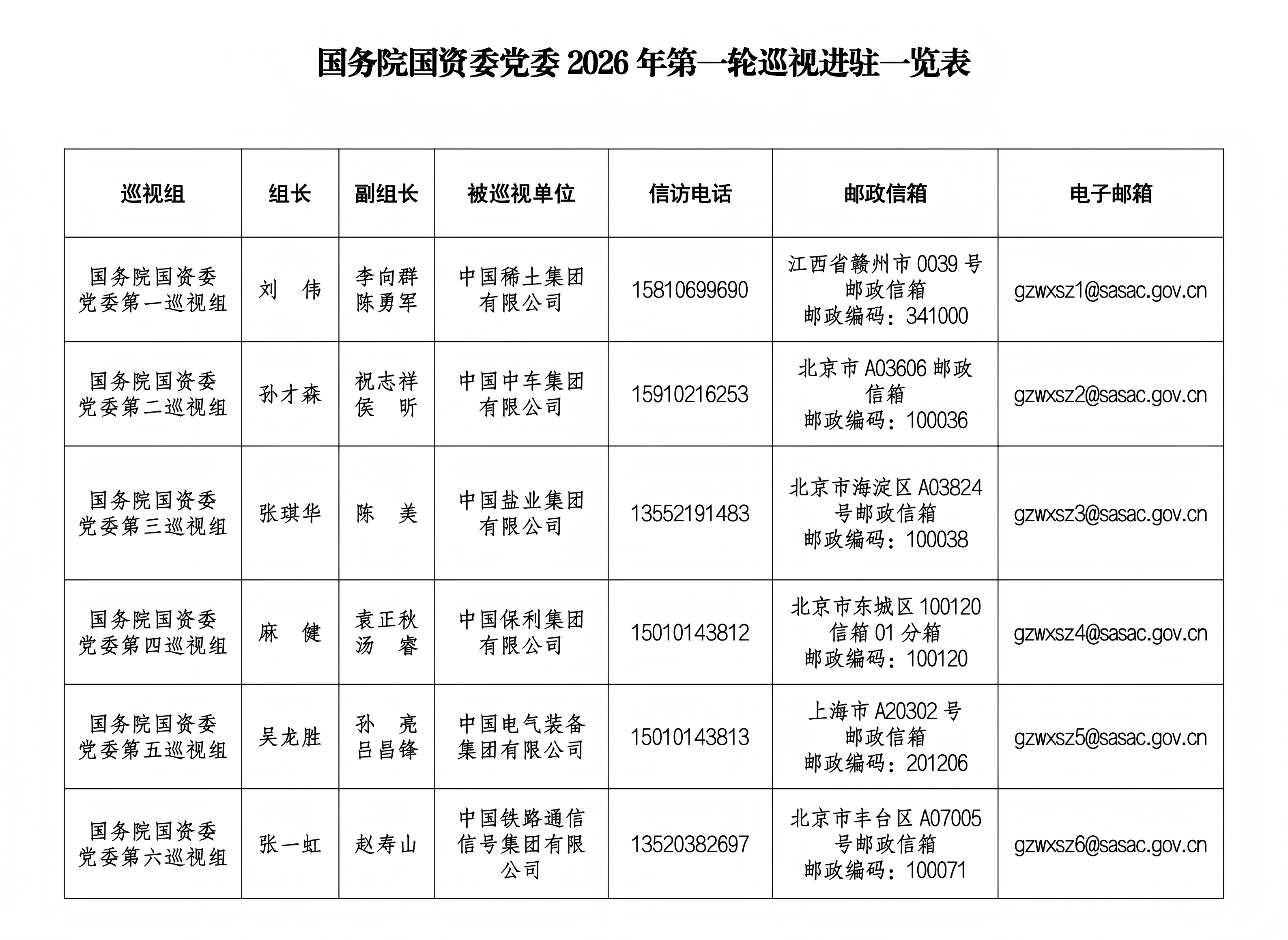 巡视期间,各巡视组设有专门值班电话、邮政信箱和电子邮箱,主要受理反映被巡视企业党委领导班子及其成员、下一级主要负责人和重要岗位领导干部的来信来电来访。巡视组受理信访时间截止到2026年6月23日。