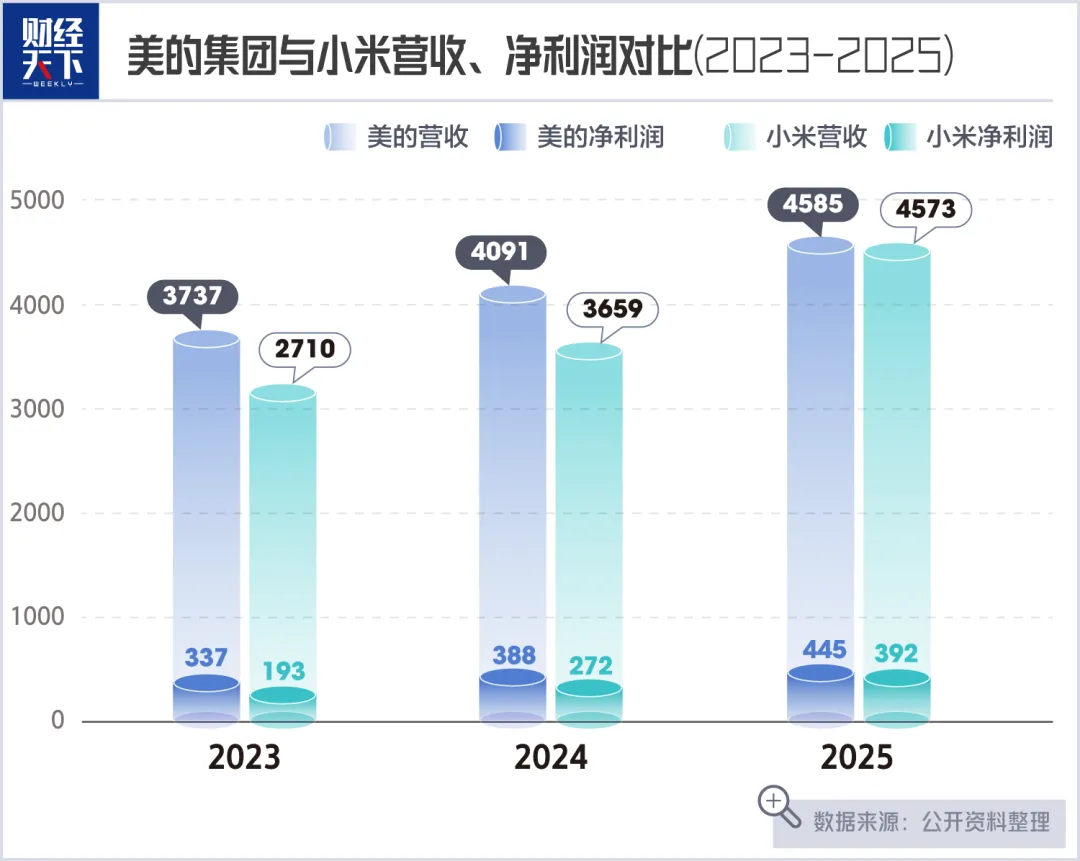 第二声炮响,来自新旧对手的“立体围剿”。美的集团的龙头地位虽稳,但每一个细分市场都陷入贴身肉搏。新势力小米的智能大家电收入在2025年增速高达66.2%,空调出货量超850万台,线上份额一度超越格力升至第二,直逼美的集团。传统巨头格力则以“十年免费包修”构建服务壁垒;海尔则通过“三翼鸟”和卡萨帝品牌,在高端场景持续领先。