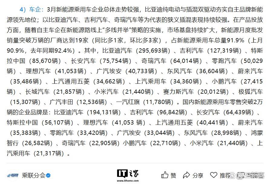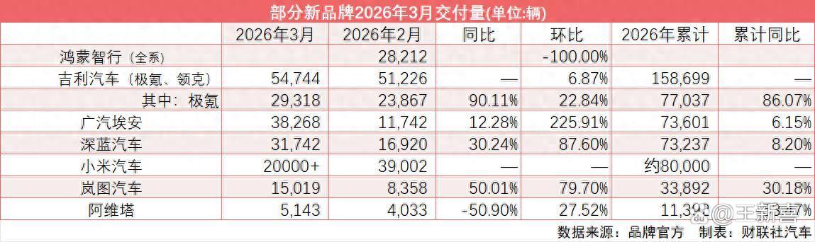 而位列“新品牌”头部位置的鸿蒙智行暂未公布销量数据,不过根据IT之家引述乘联会数据显示,鸿蒙智行3月全系零售量为26582辆。
