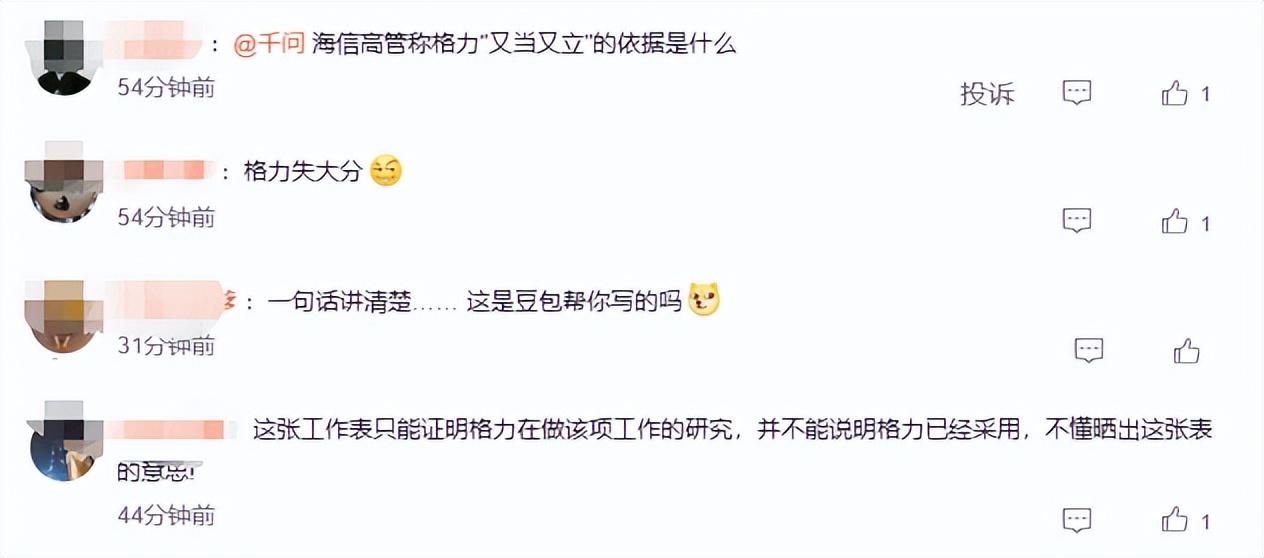 也有网友表示:这张工作表只能证明格力在做该项工作的研究,并不能说明格力已经采用,不懂晒出这张表的意思!