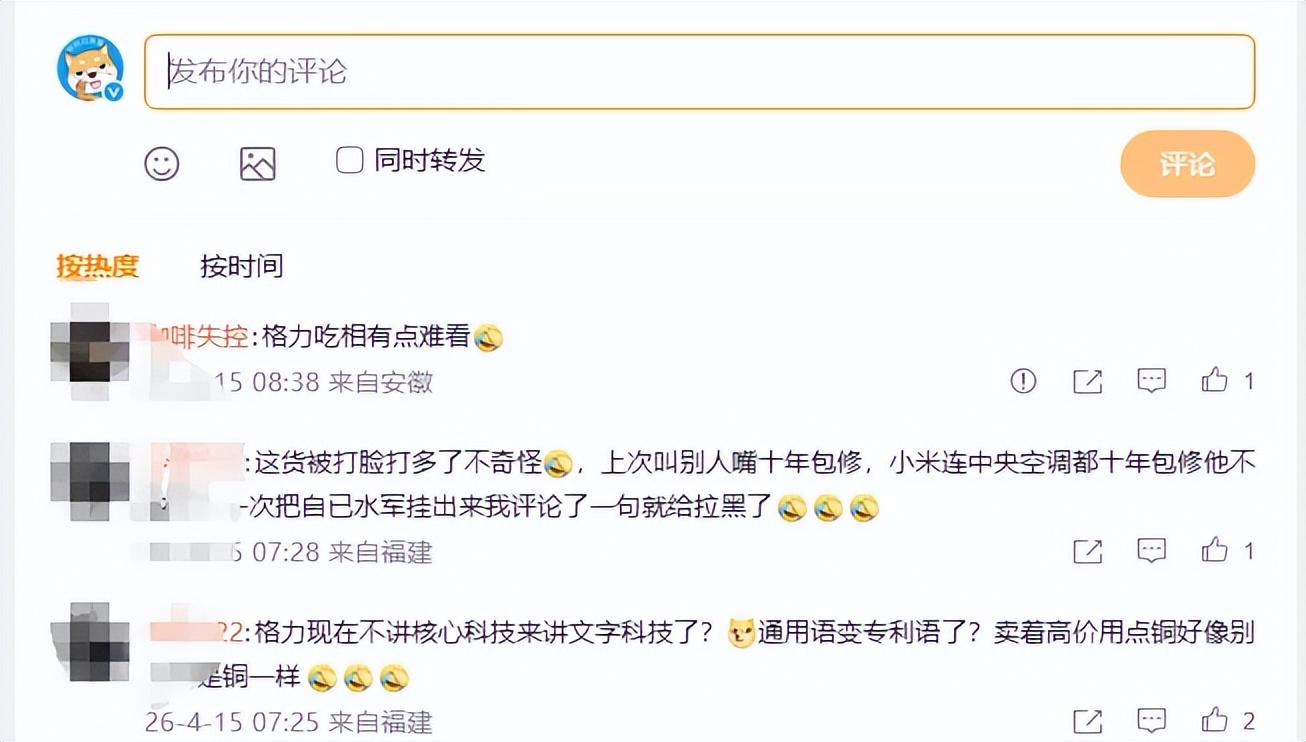 而在杨万手的评论区,有网友表示:格力吃相有点难看,也有人表示:朱磊上次叫别人嘴十年包修,小米连中央空调都十年包修他不敢了!一次把自已水军挂出来我评论了一句就给拉黑了。