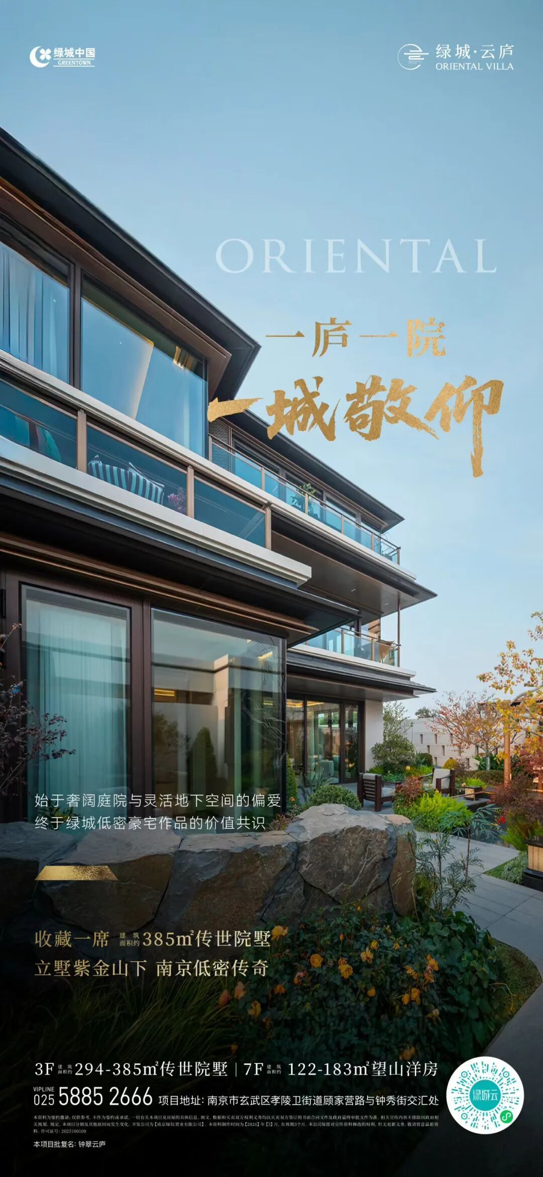 绿城·云庐——紫金山南麓,别墅建面约294-385㎡。以南京惟三、紫金山惟一的双重稀缺性,回应高净值人群对“有院生活”的全部想象。