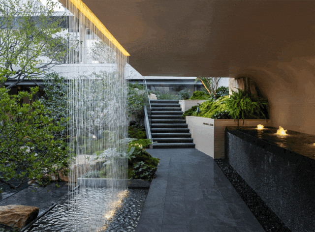首层的私家庭院,是整座宅邸的精神原点。推开落地门,一方尺度从容的围合式院落豁然眼前——这里可以是祖父侍弄花草的园艺天地,是母亲午后阅读的静谧角落,是孩子追逐嬉闹的自然乐园,更是一家人围炉夜话、仰望星空的温情剧场。