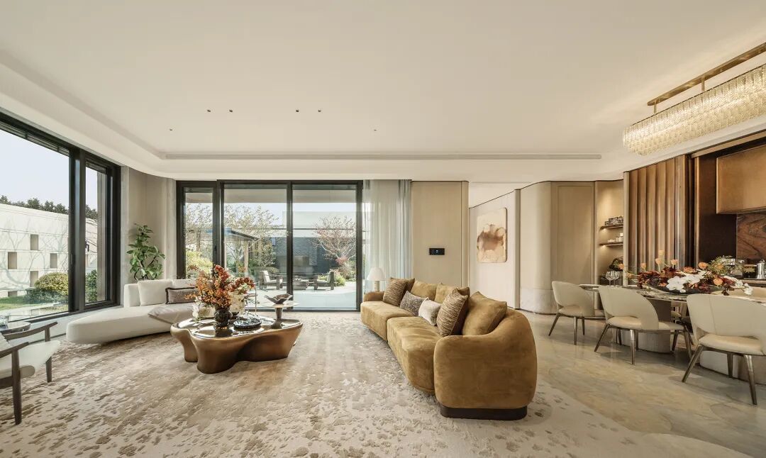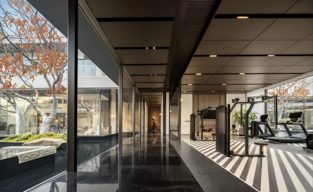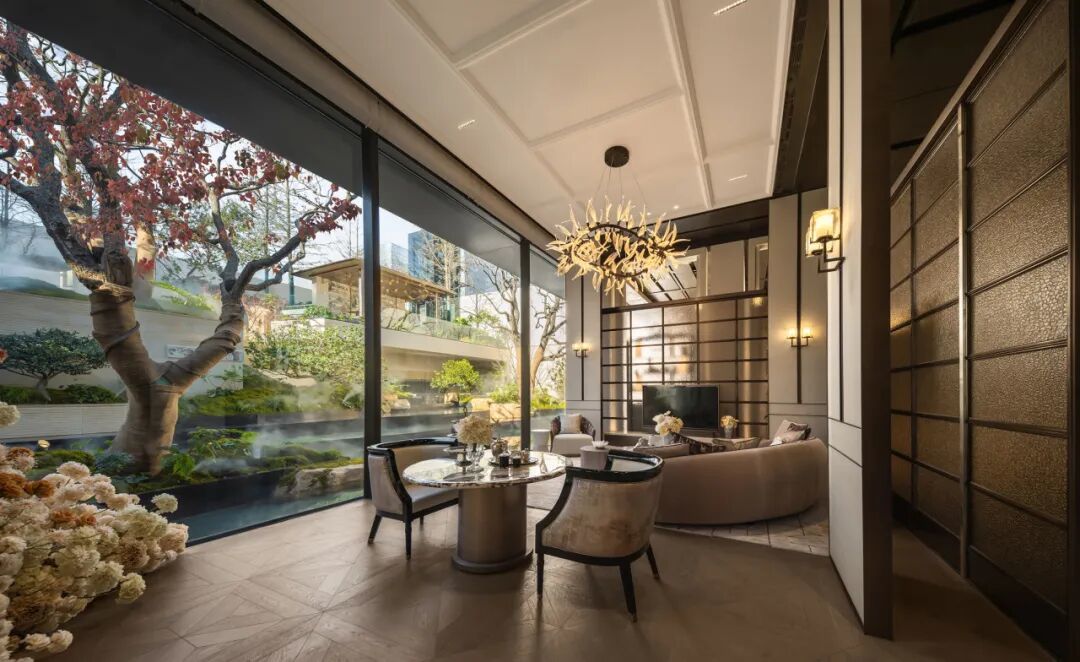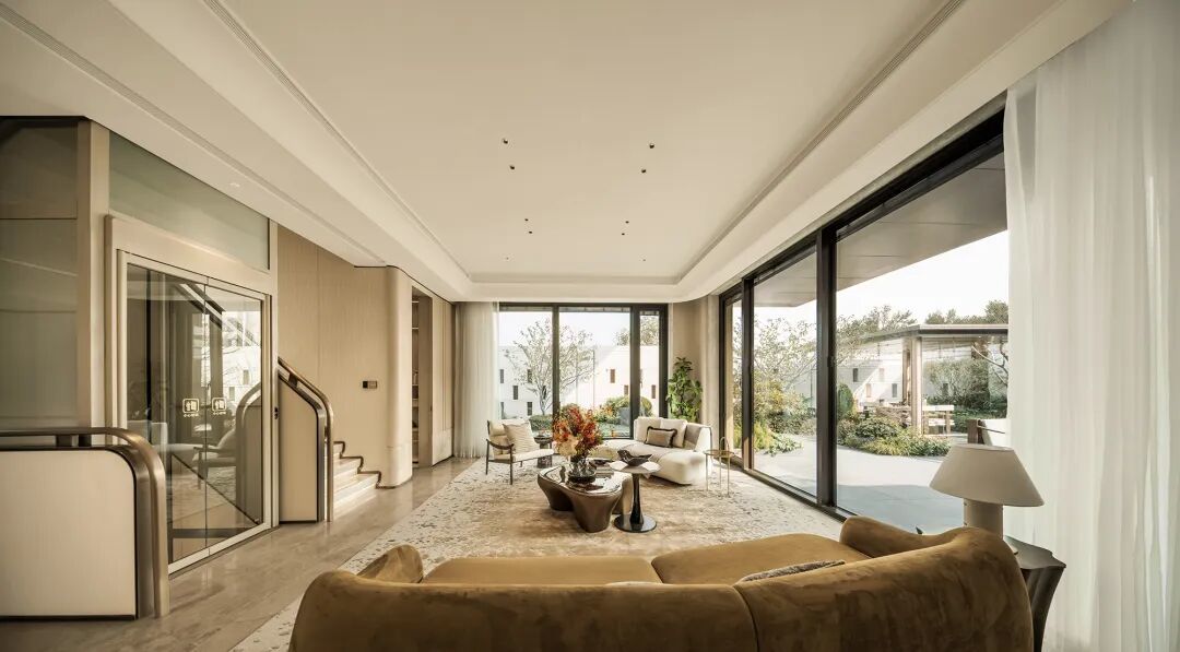 每一层空间都功能独立、意境相续。以南向超10米-12米面宽为轴心,落地玻璃将庭院中的绿意与天光毫无保留地引入室内,四季更迭成为家中流动的背景画。