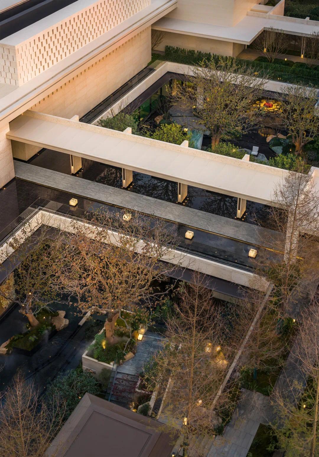 约85米巨幅艺术归家门庭、约1100㎡南京首创南北双下沉式庭院、“三重水境”等立体景观,共同构成一幅可游可赏的山水画卷。