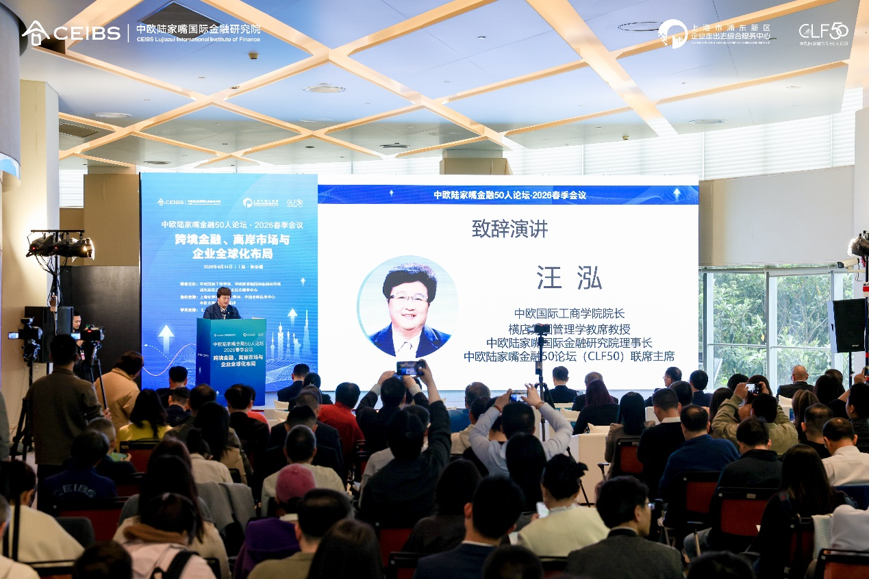 4月14日,由中欧国际工商学院、中欧陆家嘴国际金融研究院及浦东新区企业走出去综合服务中心联合主办的“中欧陆家嘴金融50人论坛·2026春季会议”成功举行。本次会议以“跨境金融、离岸市场与企业全球化布局”为主题,汇聚政产学研专家,共同探讨上海国际金融中心在制度型开放背景下的新使命 。活动同时得到了上海证券报·中国证券网、中国金融信息中心、中欧金融MBA课程部的协办支持,以及《上海金融》期刊的学术支持。中欧陆家嘴国际金融研究院常务副院长、中欧国际工商学院金融学与会计学教授赵欣舸主持会议。