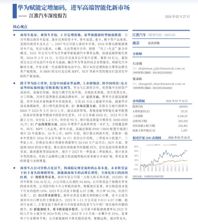 2026江淮汽车深度报告:华为赋能定增加码,进军高端智能化新市场