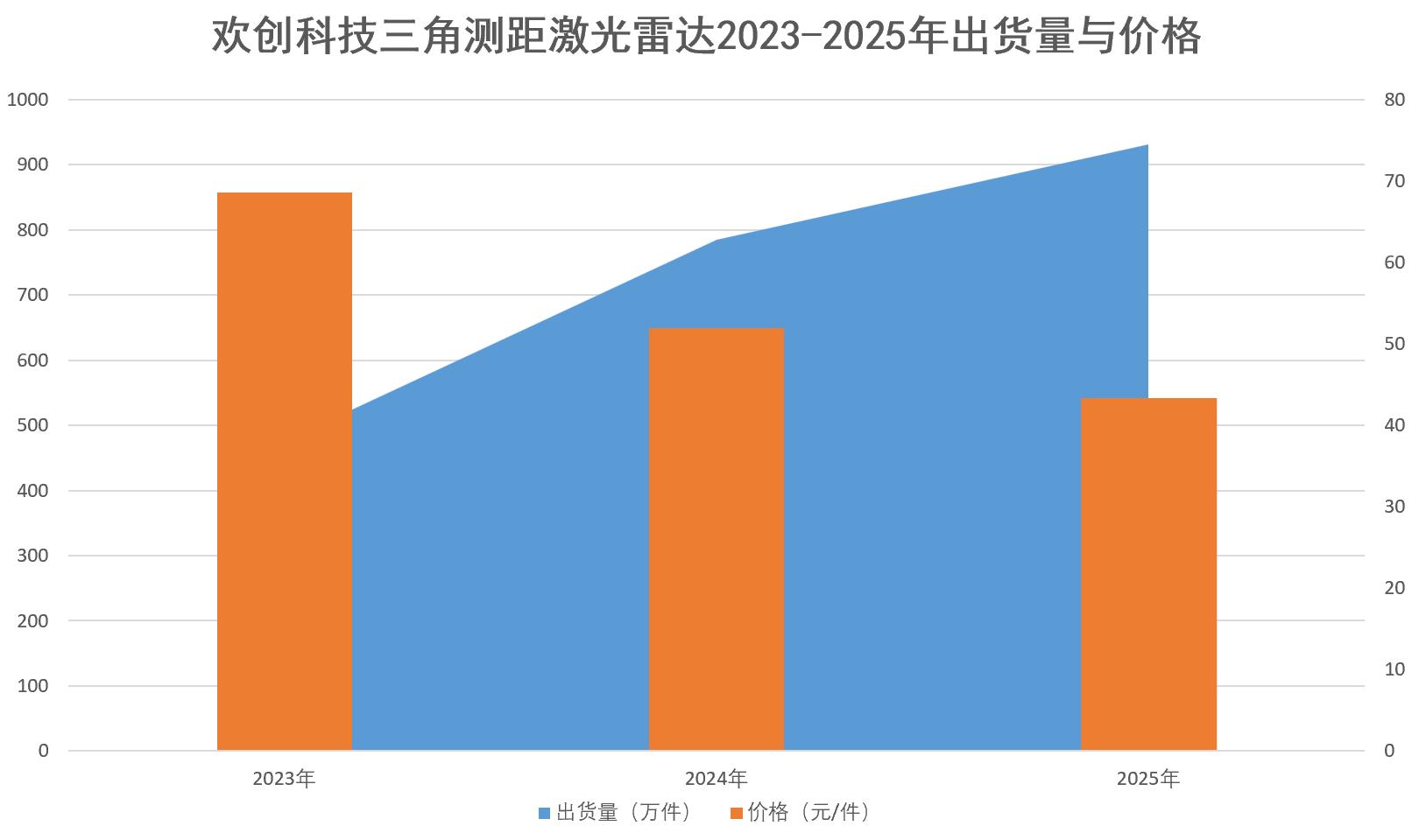 作为欢创科技的核心营收来源,三角测距激光雷达的出货量持续增长,2023年、2024年、2025年分别达到476.01万件、784.99万件、931.27万件。