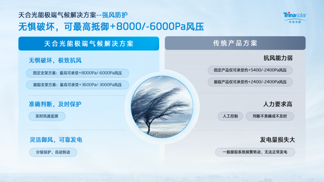 针对痛点直击,天合光能针对广东地区特有的电价、场景、品牌3大难题,提供一站破解方案,光储+AI智能增益、抗台风-极御组件硬核防护、29年大品牌长期兜底,为广东光伏投资者打造全周期安全解决方案,让每一度电都赚得稳、每一座电站都扛得住、每一笔投资都托得牢,在不确定的市场中锁定稳稳的收益!