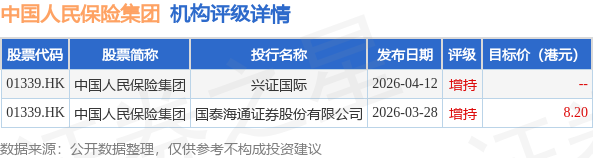 投行对该股的评级以增持为主,近90天内共有2家投行给出增持评级,近90天的目标均价为8.2港元。兴证国际最新一份研报给予中国人民保险集团增持评级。