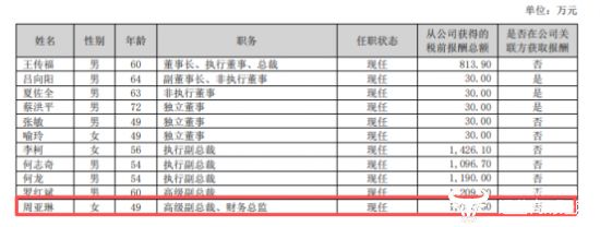 比亚迪财务总监周亚琳连续5年涨薪 去年薪酬1013.5万比王传福还高