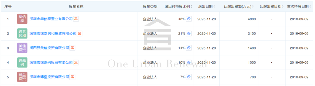 2023年5月4日,项目一期和二期发布实施主体公示,实施主体均为深圳市锦泰长基房地产开发有限公司。经查询工商信息显示,该公司2025年11月20日股权发生变更,公司股权变更为深圳市洋合置业咨询合伙企业(有限合伙)全资控股。