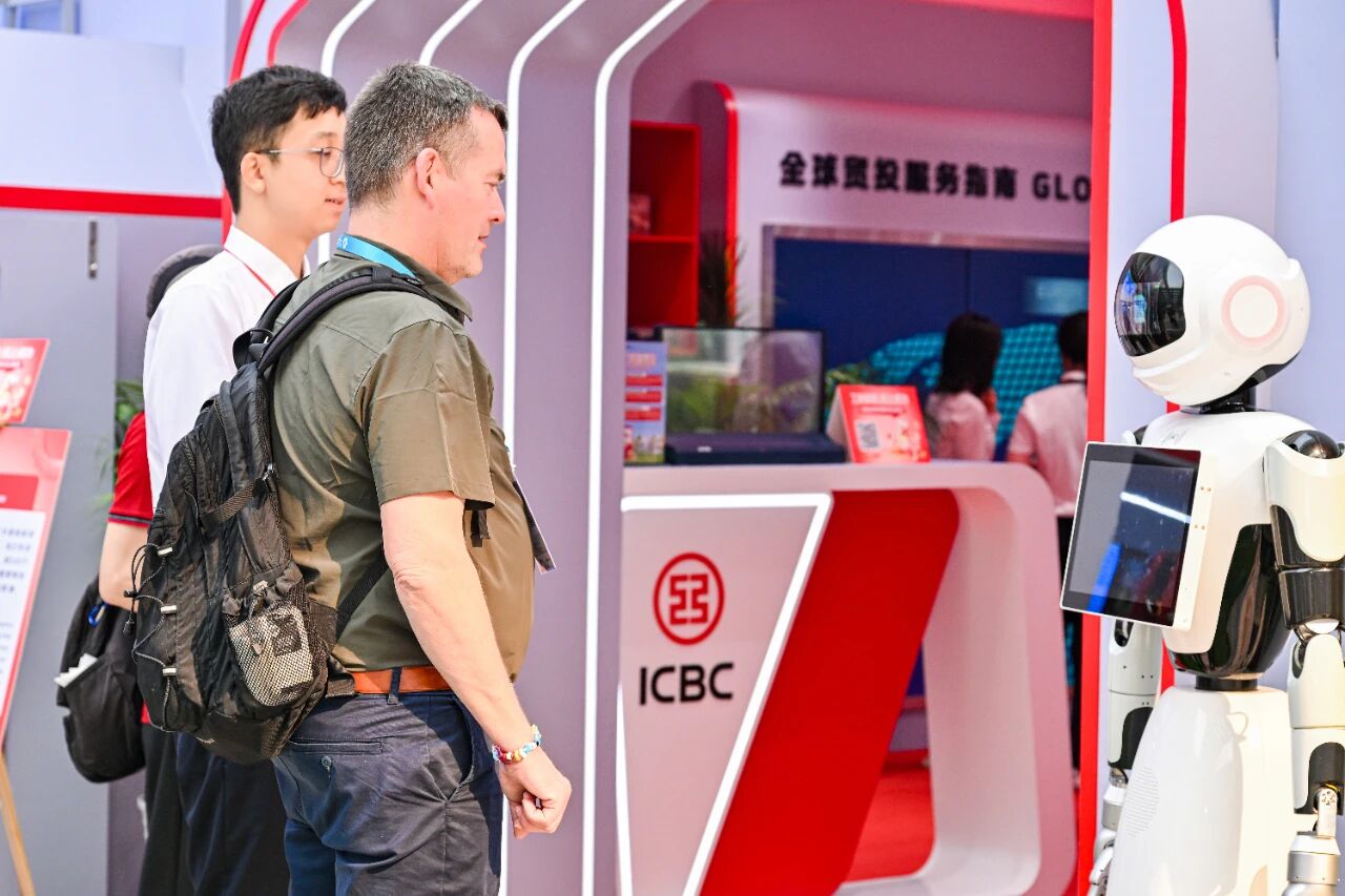 为满足广交会境外客商的商务、旅游、消费等场景支付需求,工商银行在服务专区构建“人工+智能”立体化服务体系。工行智能服务助手“小宇宙”提供服务导引与咨询解答,与客商进行沉浸式的智趣互动;智能机具可提供外币兑换、境外卡取现等便捷服务;“工银卡码通”支持境外银行卡绑定境内主流移动支付工具,带来“一码通付”的便捷体验;流动银行车将有温度的金融服务送至客商身边。