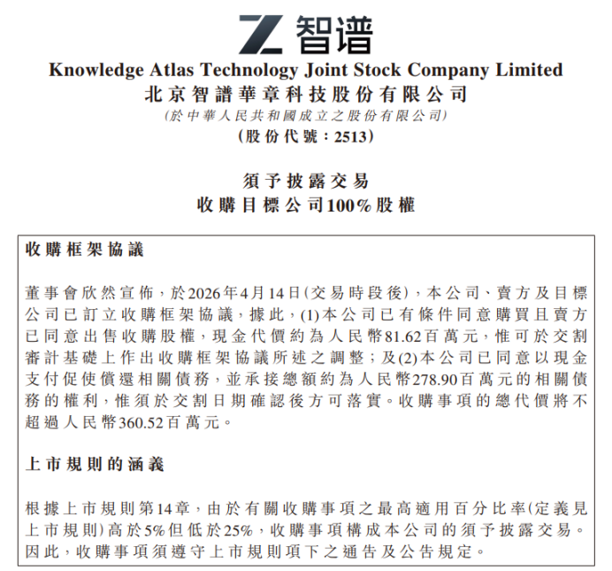 4月14日,智谱(股票代码:02513.HK)发布公告,拟以不超过3.61亿元的总代价,收购北京红钻科技发展有限公司100%股权,其核心资产正是位于海淀区中关村软件园的钻石大厦(总建面约2.27万平方米)。交割后,该物业将全部用于自用,承载日常行政及核心业务运营需求。这也是智谱上市近三个月以来最大一笔公开投资。