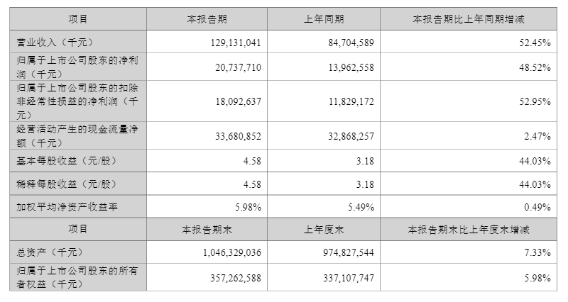 4月15日晚间,宁德时代(300750)发布了一季度业绩,数据显示,公司一季度实现营业收入1291.31亿元,同比增长52.45%;实现归母净利润207.38亿元,同比增长48.52%;实现扣非净利润180.93亿元,同比增长52.95%。
