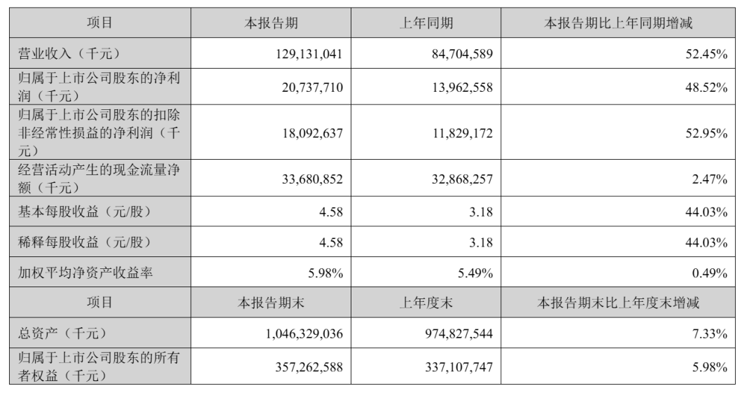 宁德时代2026年第一季净利207.38亿,较上年同期的139.63亿元增长48.52%;扣非后净利180.93亿,较上年同期的118.29亿元增长52.95%。