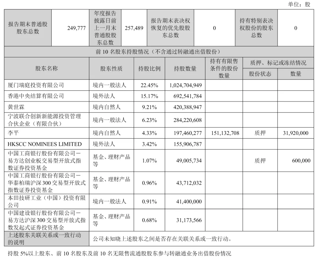 截至2025年12月31日,曾毓群旗下厦门瑞庭投资有限公司持股22.45%,香港中央结算有限公司持股15.17%;