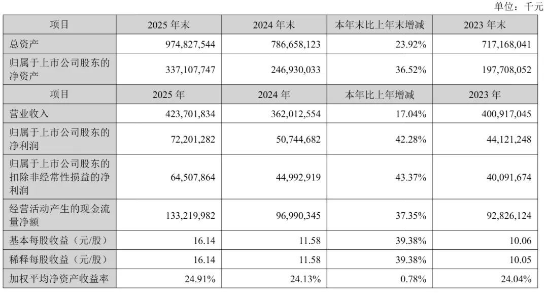 宁德时代2025年净利为722亿元,较上年同期的507亿元增长42.28%;扣非后净利为645亿元,较上年同期的450亿元增长43.37%。