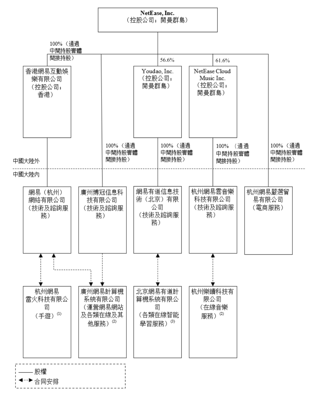 网易当前持有有道56.6%股权,持有云音乐61.6%股权。