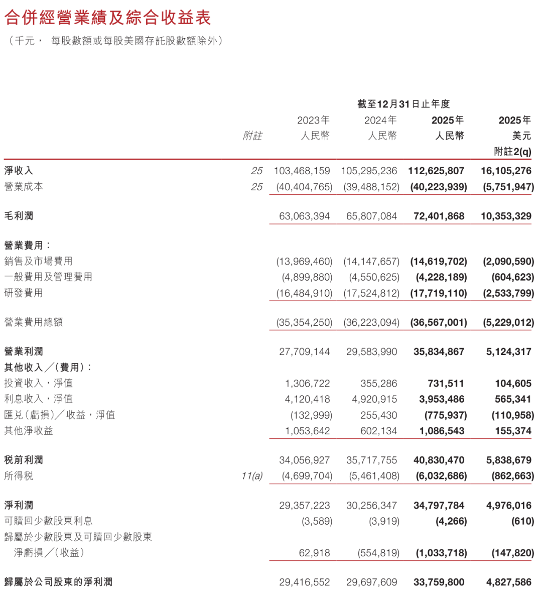 网易2023年、2024年、2025年运营利润分别为277亿、295.84亿、358.35亿元(约51.24亿美元);净利分别为293.57亿、302.56亿、348亿元(约49.76亿美元)。