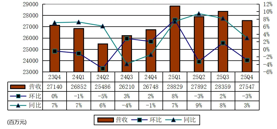 其中,网易2025年第四季度营收为275亿元(约39亿美元),较上年同期的267亿元增长3%,较上一季度的284亿元下降3%。